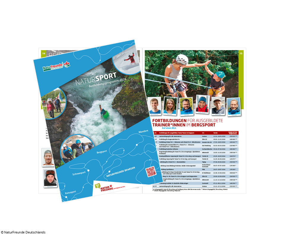 Das Natursport-Ausbildungsprogramm der NaturFreunde Deutschlands bietet Aus- und Fortbildungsmöglichkeiten in den Bereichen Bergsport, Kanusport, Schneesport und Wandern. Bei den NaturFreunden in Deutschland sind weit über 1.300 hervorragend ausgebildete Trainer*innen, Ausbilder*innen, Teamer*innen, Instruktor*innen und Leiter*innen ehrenamtlich aktiv.