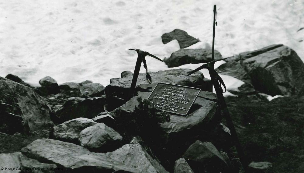 Wer die kalifornische Sierra Nevada auf dem spektakulären John Muir Trail durchwandert, kommt irgendwann auch am 3.946 Meter hohen Banner Peak vorbei. Am Fuße seines Nordwest-Gletschers steht diese Bronzetafel: „Hier ruhen Conrad – Anna Rettenbacher, die ihr Leben verloren, als sie im Sommer 1934 den Mt. Banner bestiegen. Die NaturFreunde Inc. San Francisco“.