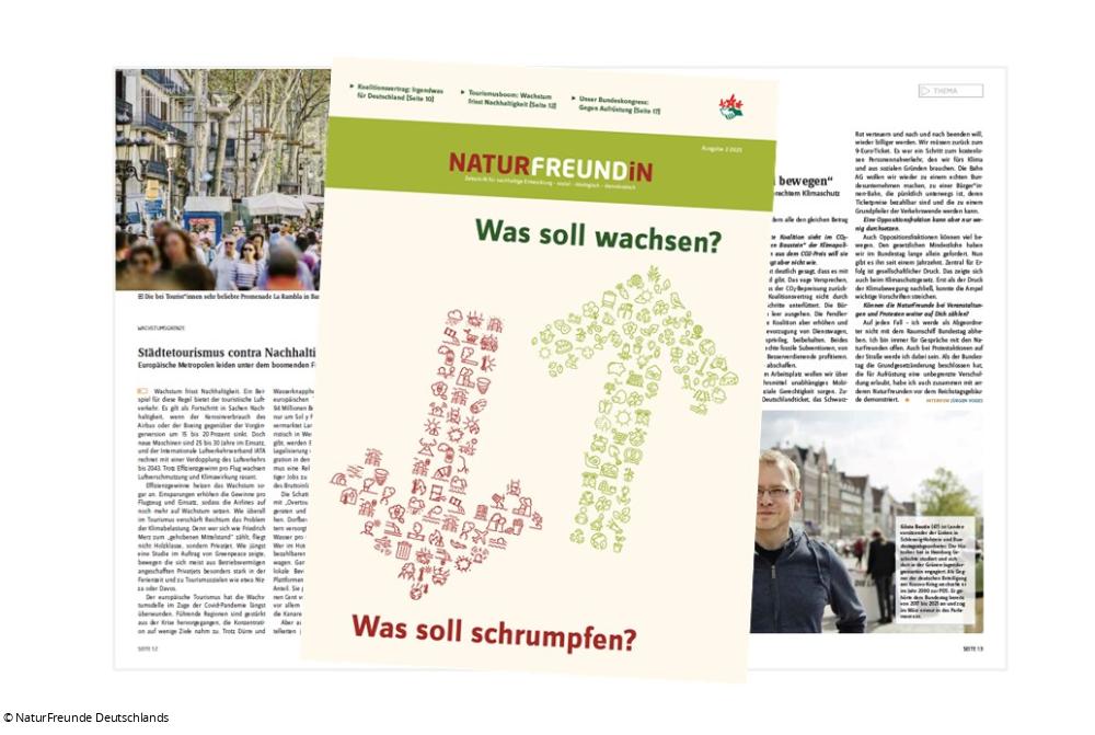 Was soll wachsen, was soll schrumpfen? Diese Fragen stellt sich die Juniausgabe der NATURFREUNDiN, Mitgliedermagazin der NaturFreunde Deutschlands.