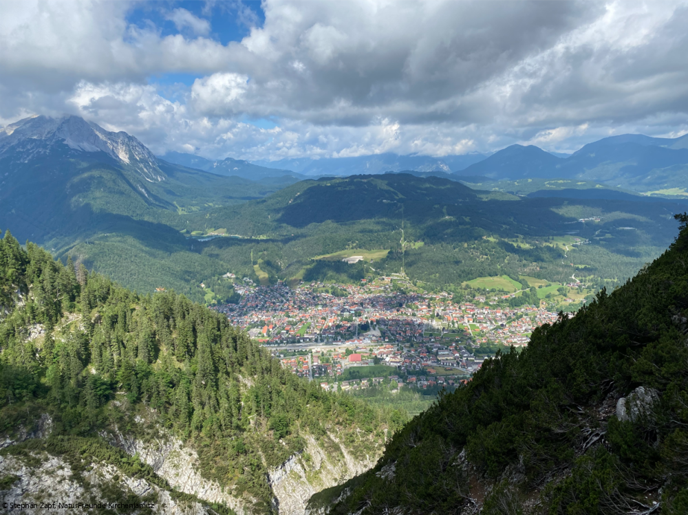 Am Montag brachen wir früh auf, um im Klettergarten „Flämenwandl“ einige Routen zu klettern. Am Nachmittag besuchten wir noch den Bundeswehr-Klettergarten in Scharnitz. Dort befassten wir uns mit dem Standplatzbau an soliden Fixpunkten sowie dem Bau eines Geländerseils. Auch einige kurze Seillängen konnten wir klettern. Am Abend gab es dann einige Theorieeinheiten sowie die Tourenplanung der ersten Führungstour über den Mittenwalder Höhenweg.