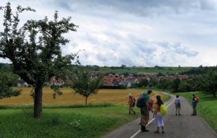 Der anschließende Rückweg, vorbei an der neuen Baumhausanlage auf dem Gelände der Oase Weil, gestaltete sich sehr kurzweilig. Mit herrlichen Panoramablicken in Richtung Schönaich und Waldenbuch war bald der Weiler Breitenstein erreicht. Quer durch den Ort und übers Frauenhölzle zum Naturfreundehaus im Eschelbachtal in Holzgerlingen. Dort bot sich bei Kaffee und Kuchen ein schöner Ausklang der diesjährigen Natura-Trail-Wanderung.