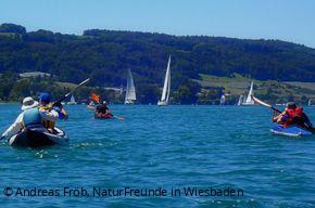 "Panta Rhei" – das ist altgriechisch und bedeutet "Alles im Fluss". Selten traf der Spruch besser zu, als auf der diesjährigen Faltboottour der NaturFreunde in Wiesbaden. Oder doch besser: Panta Rhein? Denn auf unserer Tour ging es mit 14 Paddler*innen auf dem Rhein von Konstanz nach Schaffhausen.