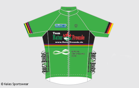 Der Slogan „Team NaturFreunde“ prangt dabei mit dem NaturFreunde-Bildlogo groß auf der Brust, zudem einige Sponsorenlogos. „Macht sich auch auf Renn- und Tourenrädern gut“, sagt Klaus.