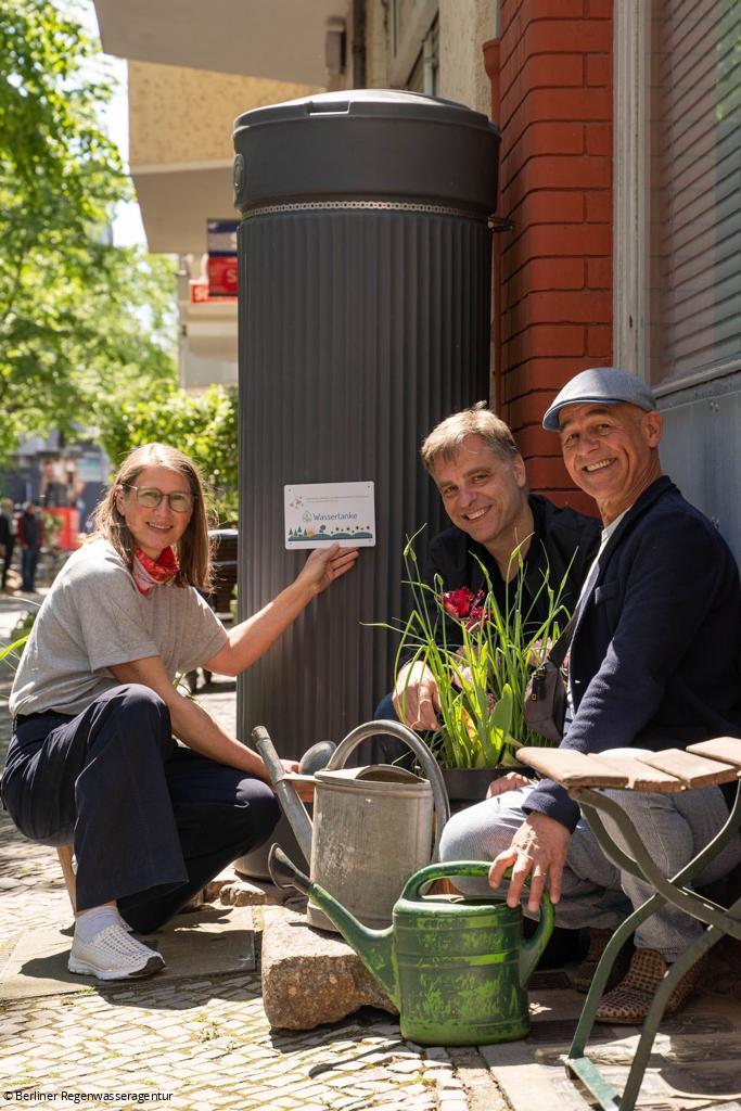 Urbanes Stadtgrün ist durstig und Regenwasser kostbar. Als angehende Schwammstadt will Berlin zukünftig in der Lage sein, möglichst viel Regenwasser zu speichern. Gemeinsam können wir Lösungen finden, die kostengünstig und mit wenig Aufwand umzusetzen sind. Beispielsweise mit den Wassertanken von wassertanke.org. Hierbei handelt es sich um Regentonnen, die das anfallende Regenwasser speichern. So können Menschen vor Ort Stadtbäume, Vorgärten oder Parklets einfach und wassersparend gießen.
