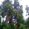 Mammutbäume säumen den weiteren Weg. Ihre dicke, faserige Rinde schützt die Baumriesen in ihrer Heimat Kalifornien vor Waldbränden. Und erst bei sehr großer Hitze, wie sie ein Waldbrand bewirkt, öffnen sich die Zapfen und geben die Samen frei, die dann unter günstigen Bedingungen keimen können. Einige der mehr als 40 Mammutbäume im Wernhaldenpark wurden schon zu Zeiten König Wilhelms I. von Württemberg um 1860 gepflanzt. Nur ein Loth (etwa 16 Gramm) des sehr kleinen und leichten, aber teuren Samens sollten damals in Amerika gekauft werden, mangelhafte Englischkenntnisse führten aber offenbar dazu, dass ein Pfund („a lot of“) geliefert wurde. Der überschüssige Samen wurde daraufhin im ganzen Land verteilt.
